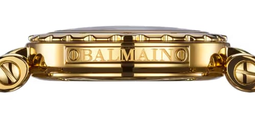 Balmain name engraved on the side of the case
